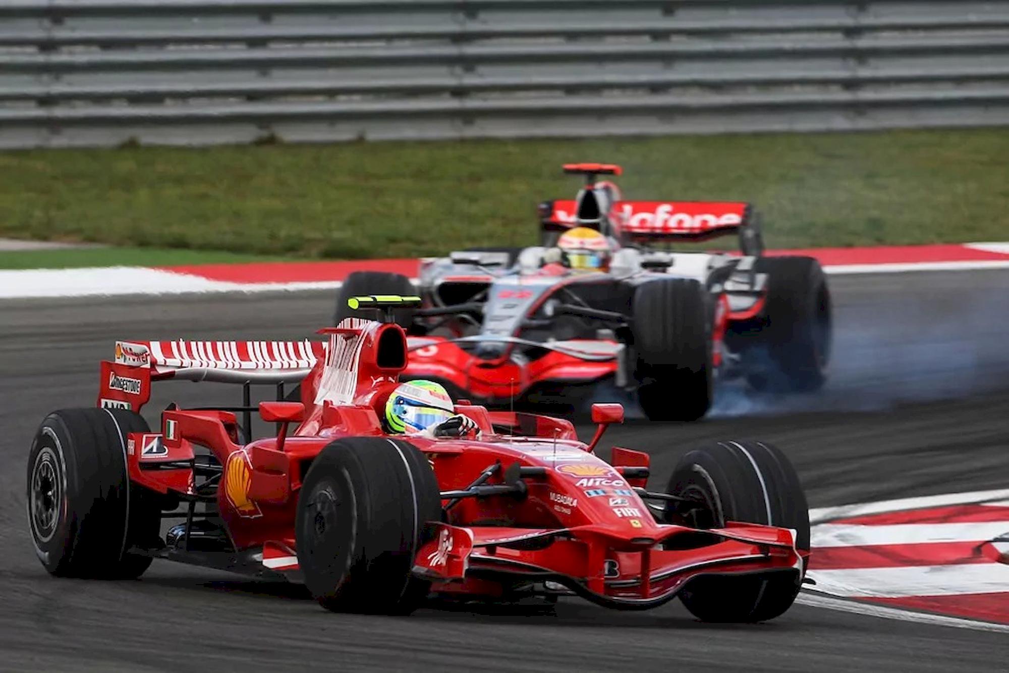 Il campionato 2008 vede la sua alba in Australia, dove Hamilton stravince, mentre le Ferrari combinano disastri a non finire, con Felipe Massa ritirato e Kimi Raikkonen 8°. Maranello si rifà abbondantemente nelle quattro gare successive, con Raikkonen trionfante in Malesia e Spagna, e Massa in Bahrain e Turchia.