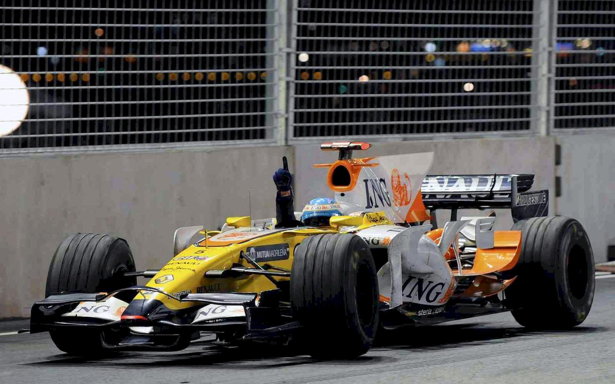 Al 61° giro cala la bandiera a scacchi sul Singapore Street Circuit: Fernando Alonso vince la 1° Edizione del Gran Premio di Singapore, favorito enormemente da quella Safety Car causata dall’incidente di Nelson Piquet Jr, il suo compagno di squadra. Il podio è completato dalla Williams di Nico Rosberg e dalla McLaren di Lewis Hamilton, mentre con la sua Ferrari Felipe Massa chiude solo in 13° posizione, ben lontano dalla zona punti.