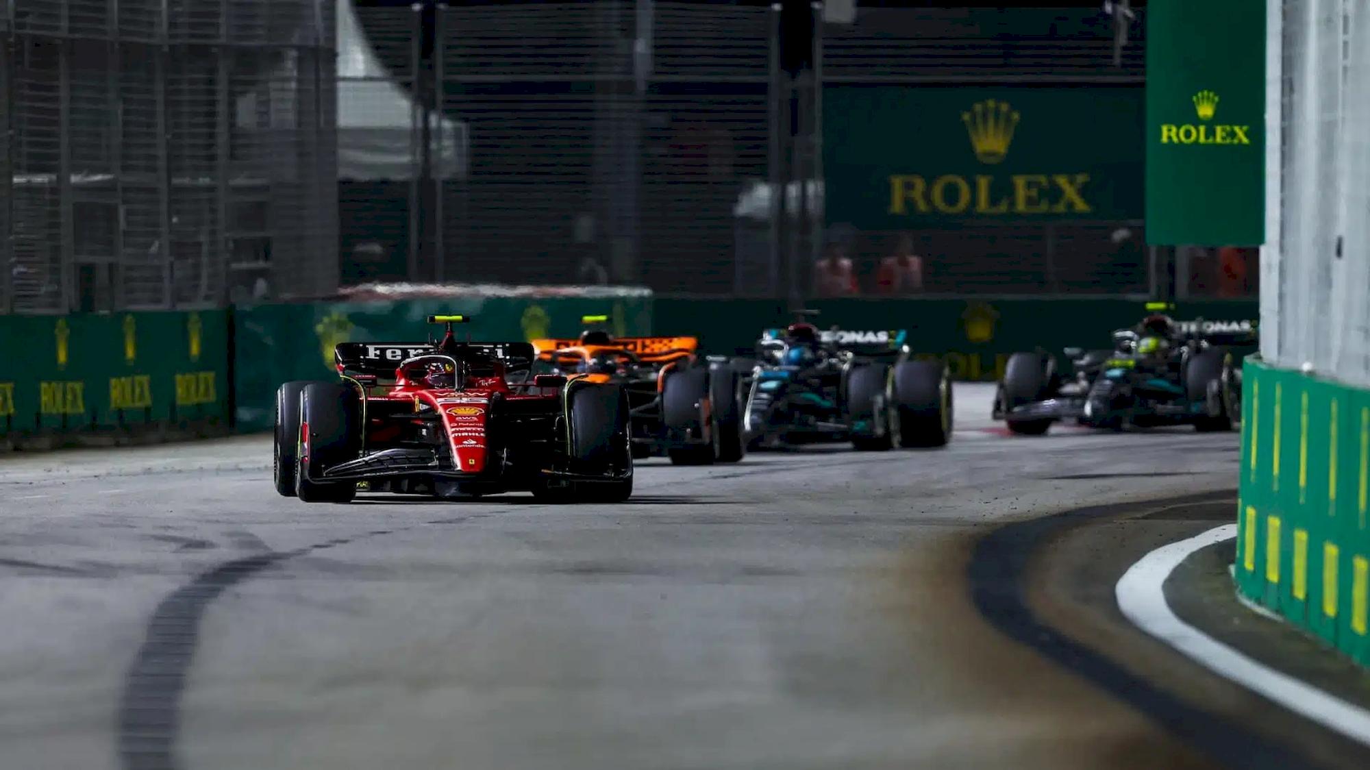 Nel 2023, Carlos Sainz vince con la Ferrari (unica vittoria stagionale non firmata Red Bull) davanti a Lando Norris e Lewis Hamilton, attuando una strategia davvero geniale. Per proteggersi dalla cavalcata in rimonta delle due Mercedes, che dispongono di gomme estremamente più fresche, lo spagnolo rallenta appositamente per fornire a Norris il DRS, in modo da non dare la possibilità a Russell di attaccare il pilota McLaren. Questa è, senza dubbio, la vittoria più bella dello spagnolo fino ad oggi.