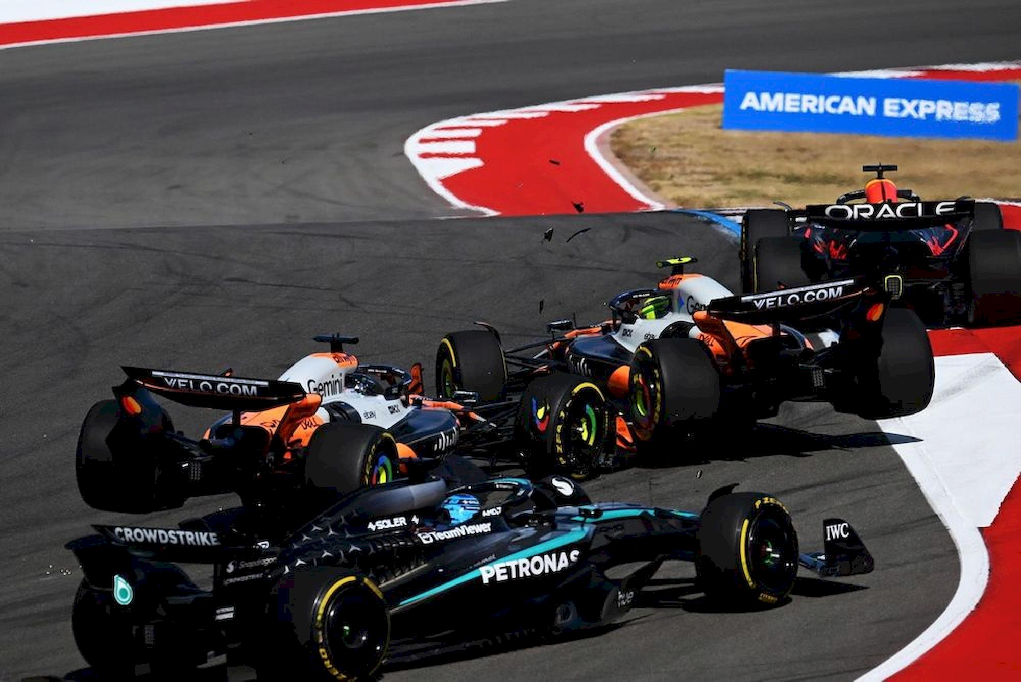 Al via, Verstappen ha lo spunto migliore e scappa in testa. Alle sue spalle, il far west! Piastri parte meglio di Norris e lo affianca all’esterno in curva 1. In uscita tenta l’incrocio, ma trova al suo esterno la Sauber di Hulkenberg, che a sua volta è affiancato da Alonso. Il sandwich è clamorosamente fatale per i due piloti McLaren: Piastri colpisce Norris ed entrambi sono costretti al ritiro. Disastro papaya! Anche Alonso si deve ritirare, mentre Hulkenberg, con la vettura danneggiata, riparte 15°.