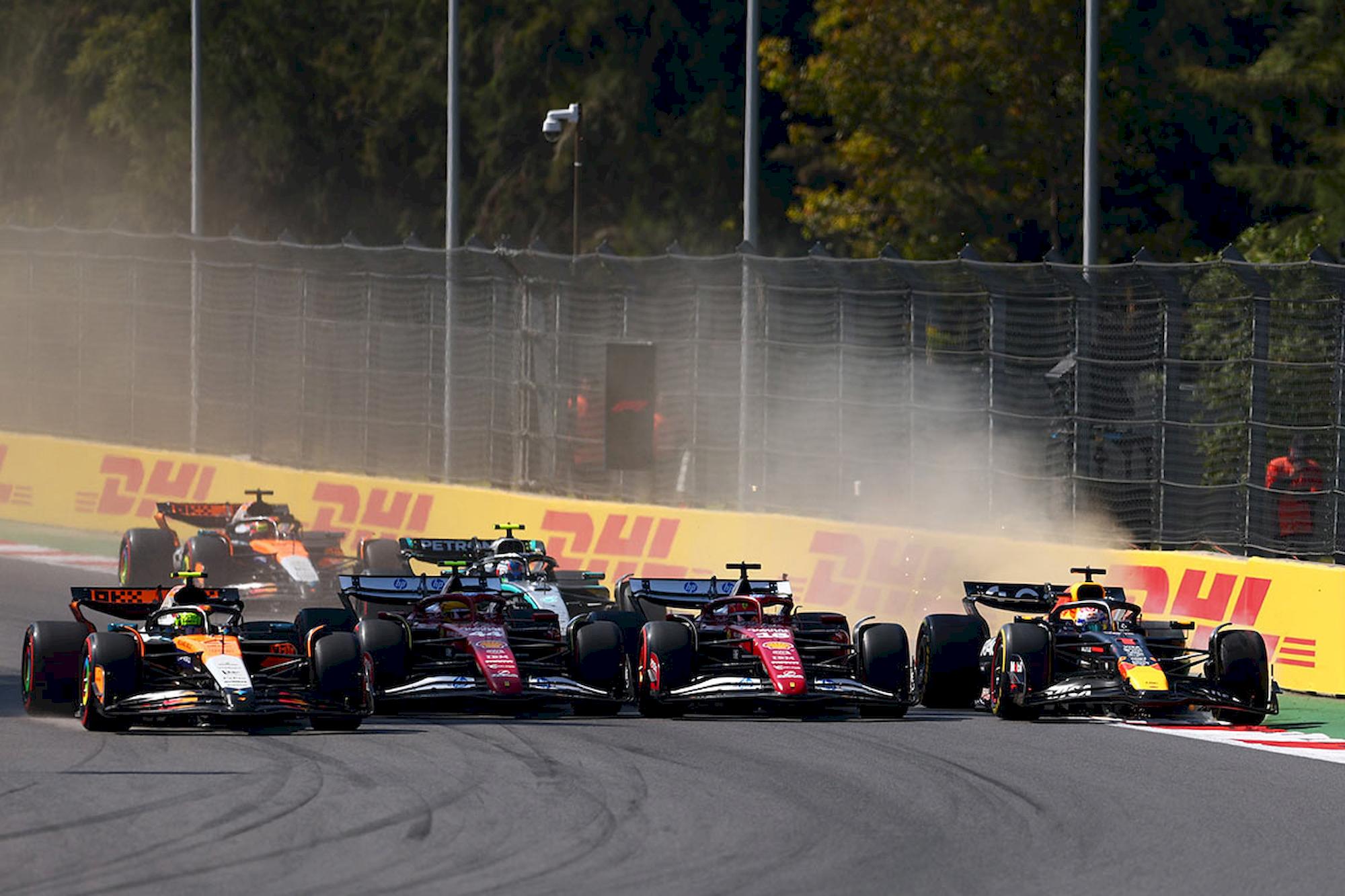 Al via, Norris parte meglio di tutti e scappa. Leclerc non ha uno spunto velocissimo, tanto che Hamilton prende tutta la sua scia e cerca di affiancarlo all’interno. Nel frattempo, Verstappen sceglie la traiettoria esterna e Leclerc sfrutta la scia di Norris per affiancare il britannico. Ne consegue che alla staccata di curva 1 siano quattro i piloti appaiati. Leclerc taglia la curva e deve restituire la posizione a Norris; Verstappen va sull’erba e, grazie a un controllo da show, torna in pista sfiorando il muro, alle spalle di Hamilton. Dietro l’olandese c’è Russell, seguito da un incredibile Bearman, che si trova già 6° davanti ad Antonelli. Piastri è invece scalato in 9° posizione, dietro anche Tsunoda.